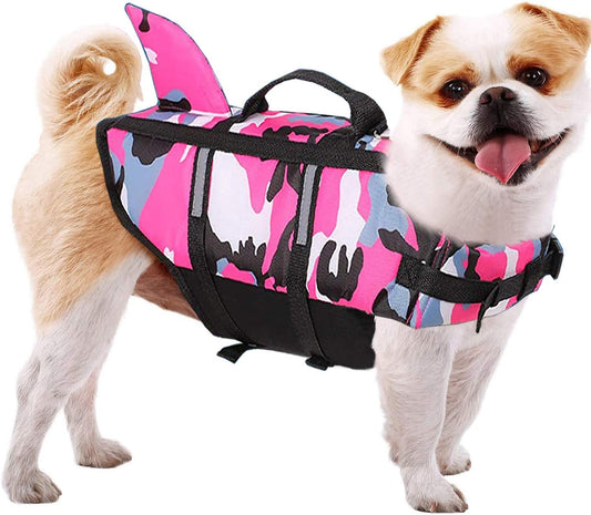 Small Dog Life Jacket for Dogs Pink Ripstop XS Camo Dog Life Vest with Rescue Handle Shark Fin Pet Floatation Vest Saver for Swimming, Boating