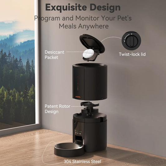 Automatic Pet Feeder with Portion Control, Meal Call, and Backup Power, Black
